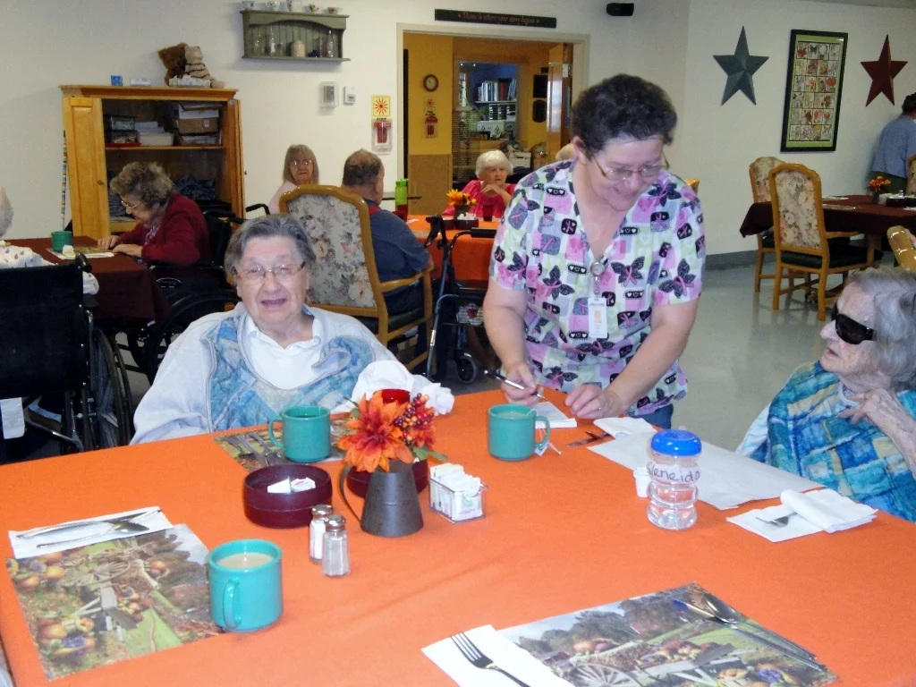 The food is prepared to residents’ specifications at the time they order it. Our dining room is lovingly named “B.B.’s Kitchen” after two cooks, Beatrice Haskell and Barbara Nevells, who were the originators of the kitchen when the facility opened in 1983.